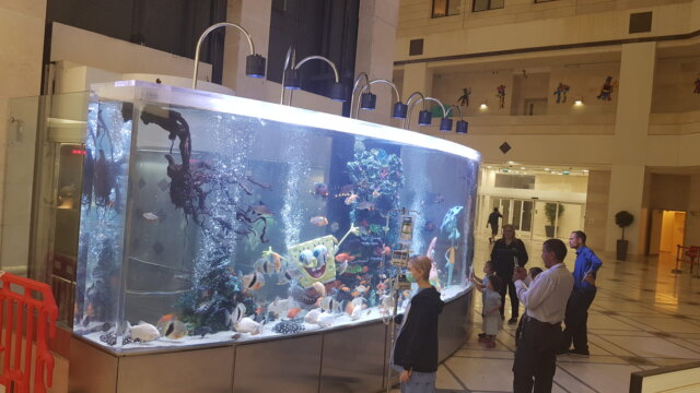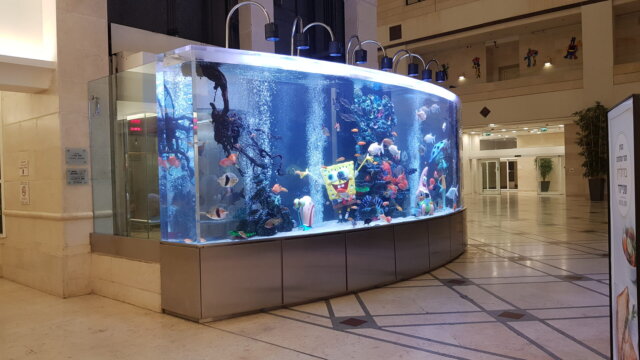 האקווריום מרשים במיוחד בגלל גודלו, עיצובו והחומר ממנו הוא בנוי.