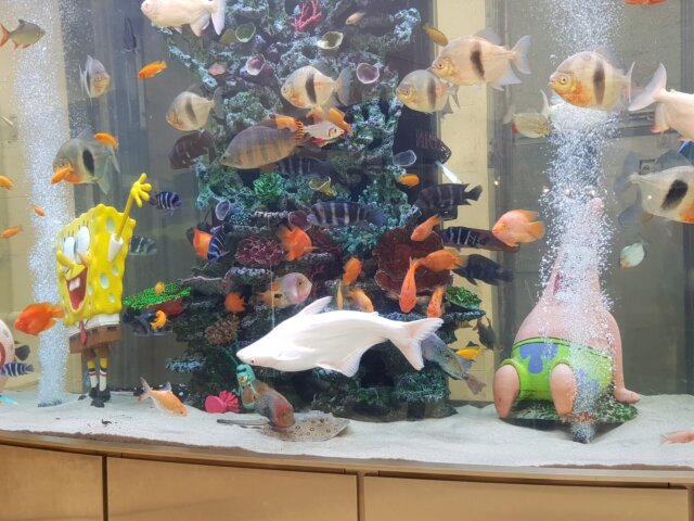 ביצענו את הדמויות על ידי מכונת הדפסת תלת ממד. וצבענו את הדמויות לפי הנחיות הערוץ באמצעות אמן. אנו נותנים שירות של אחזקה קבועה באקווריום. הכולל צלילה לניקוי החלונות אחת לשבוע.